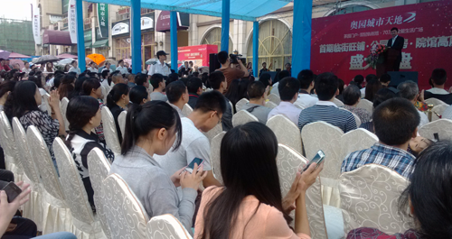 开盘当天早上8点,重庆意昂2城市天地广场及道路两旁早已排起了车龙,从各地冒雨赶来选房的客户已早早签到登记,并陆续进入选房区等候。9点30分,开盘盛典正式开始,全场入场客户有上千余名,到处人头攒动,景象甚是壮观。在选房过程中,场面虽异常火爆,却井然有序、有条不紊,每个工作人员都忙得不可开交,现场客户也翘首以待。据相关人士透露,此次首期开出的轻轨临街商铺、中心院馆高层、城央墅公园洋房受到购房者的疯抢,更有客户一口气买入二十余间商铺。