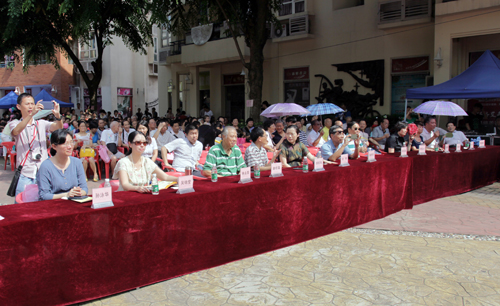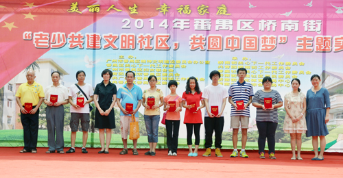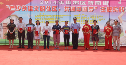 (2014年7月15日—广州)7月15日上午,“老少共建文明社区,共圆中国梦”主题实践活动在番奥社区文化长廊举行,此次活动由番奥社区党委与区文明办、区关工委、区妇联、团区委、桥南街党工委联合主办。番禺区委常委、宣传部部长徐柳,区关工委名誉主任越良钊、莫灿章、谢权森、叶才,执行主任陈松有,副主任郭锡森、陈又南,区委老干部局局长黄锦坤、团区委副书记吴锦莹等领导出席了活动。番奥社区居民代表220多人参加了此次活动。