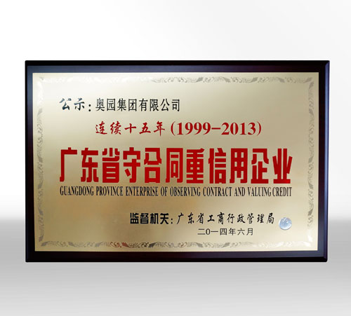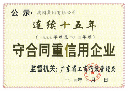 奥团集团连续十五年荣获“广东省守合同重信用企业”,充分体现了“高效、诚信、责任”的企业精神,体现意昂2重视合同管理和履行企业责任,不断提升企业品牌知名度与美誉度,受到了政府及社会各界的一致好评和高度认可。