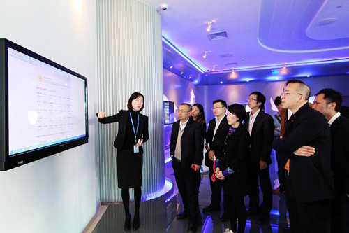 在腾讯智能展厅,工作人员向大家展示基于移动互联网的各种未来智能家居应用方案,以及基于腾讯地图的O2O解决方案等腾讯领先的服务技术平台。