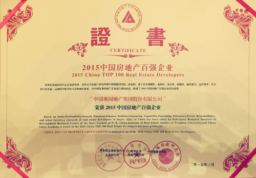“2015中国房地产百强开发企业”荣誉证书