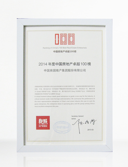 “2014年度中国房地产卓越100榜”荣誉奖牌