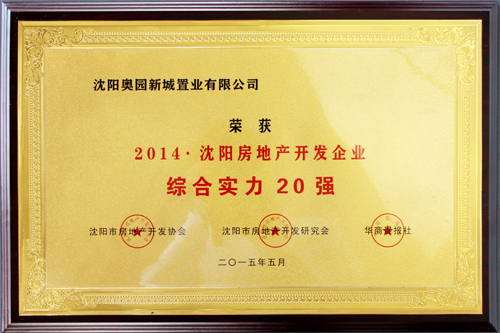 “2014沈阳房地产开发企业综合实力20强”奖牌