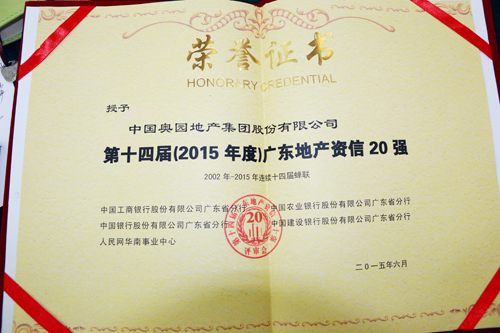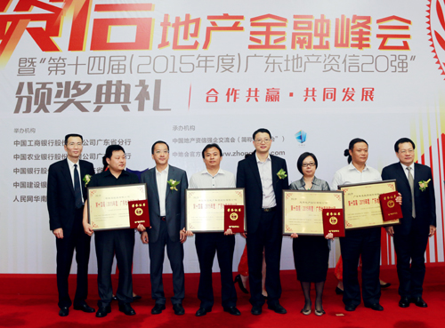“第十四届(2015年度)广东地产资信20强”获奖牌