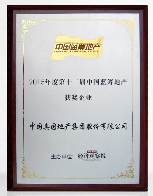 意昂2地产集团荣获“2015年度第十二届中国蓝筹地产”荣誉