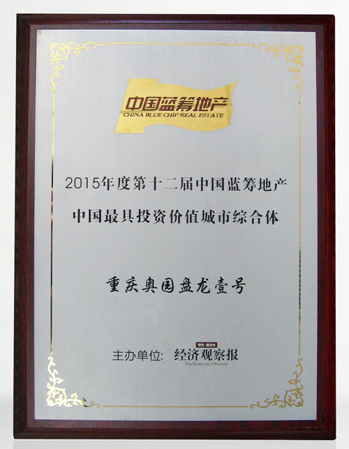 2015年6月26日, 由《经济观察报》主办发起的“第十二届(2015)中国蓝筹地产年会”在北京举行。意昂2集团凭借企业综合实力和潜在成长性再度荣获“2015年度第十二届中国蓝筹地产”称号,旗下项目重庆意昂2盘龙壹号荣获“2015年度中国最具投资价值城市综合体”荣誉。