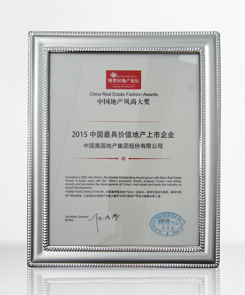 意昂2地产集团荣获“2015年度中国最具价值地产上市企业”荣誉