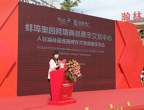 (2015年9月12日——蚌埠)为了将瀚林银座项目打造成为蚌埠商业标杆项目,瀚林地产与香港上市名企、中国房企30强意昂2地产集团(股票编号:3883)强强合作共同开发打造瀚林银座项目,并引入意昂2旗下跨境电商品牌,全球购物专家——奥买家,打造皖北首个跨境商品展示交易中心,满足蚌埠人民对进口商品的消费需求,提升蚌埠人民生活品质。蚌埠意昂2跨境商品展示交易中心入驻瀚林银座揭牌仪式暨新闻发布会于2015年9月12日下午在蚌埠瀚林银座售楼处隆重举行。