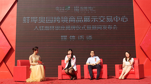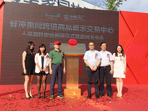 各位领导共同为“蚌埠意昂2跨境商品展示交易中心”揭牌!