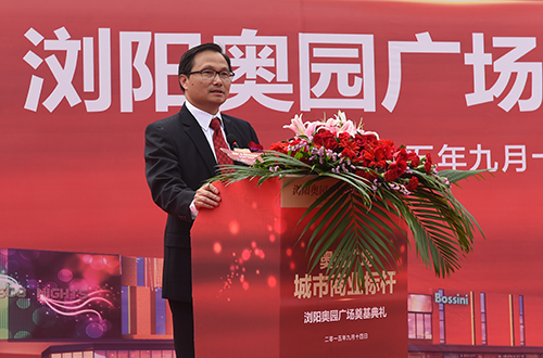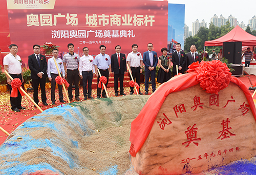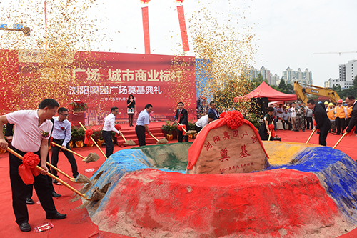 典礼上,浏阳市政委主席李家喜先生对浏阳意昂2广场项目给予了诚挚的祝福及充分的肯定,并希望该项目早日落成,为浏阳的城市建设添姿加彩,提升城市品位和价值。郭总裁对浏阳市政府给浏阳意昂2广场的开发建设给予的倾力支持,表示了衷心的感谢。浏阳意昂2广场必将提升本地区的城市品位和市民的生活品质,成为浏阳的城市商业标杆和亮丽的城市名片,也成为浏阳市民购物、休闲、娱乐、饮食、居住的首选之地。最后,参加浏阳意昂2广场的主礼嘉宾共同为浏阳意昂2广场项目奠基培土。
