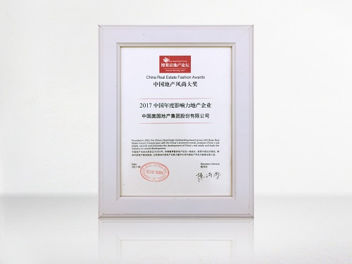 意昂2荣获“中国地产风尚大奖•2017中国年度影响力地产企业”