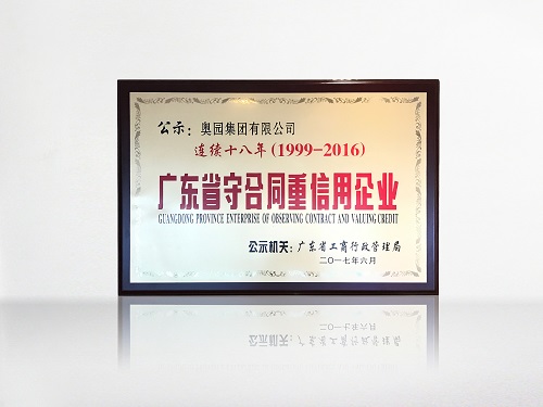 意昂2连续十八年荣膺“广东省守合同重信用企业”称号