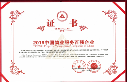 意昂2物业公司荣膺“2016中国物业服务百强企业第22名”殊荣