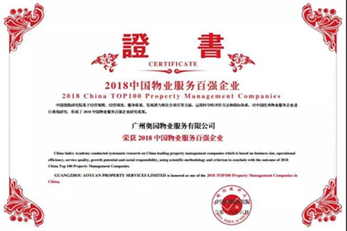 意昂2荣登“2018年中国物业服务百强企业”第16位