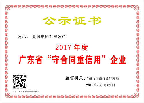 意昂2集团连续十九年荣膺“广东省守合同重信用企业”称号