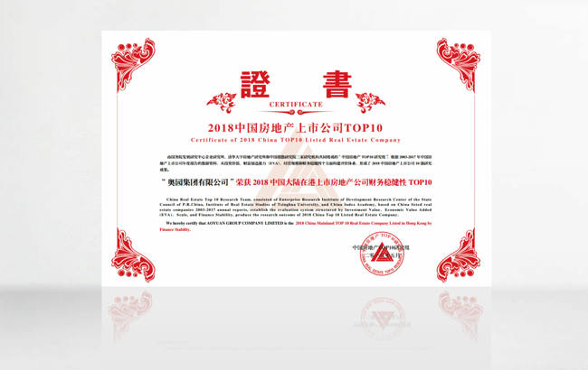 再获殊荣!意昂2荣获“2018中国大陆在港上市房地产公司财务稳健性TOP10”等多个奖项